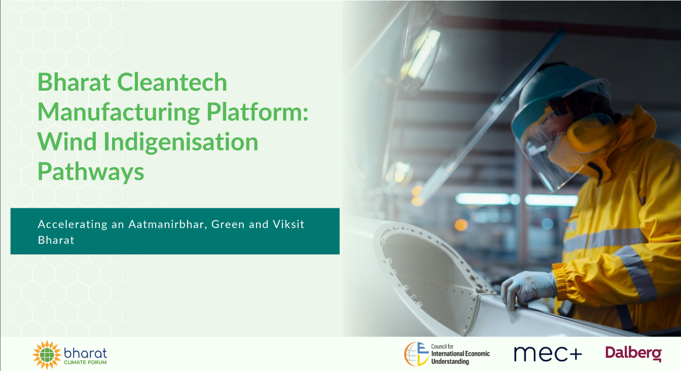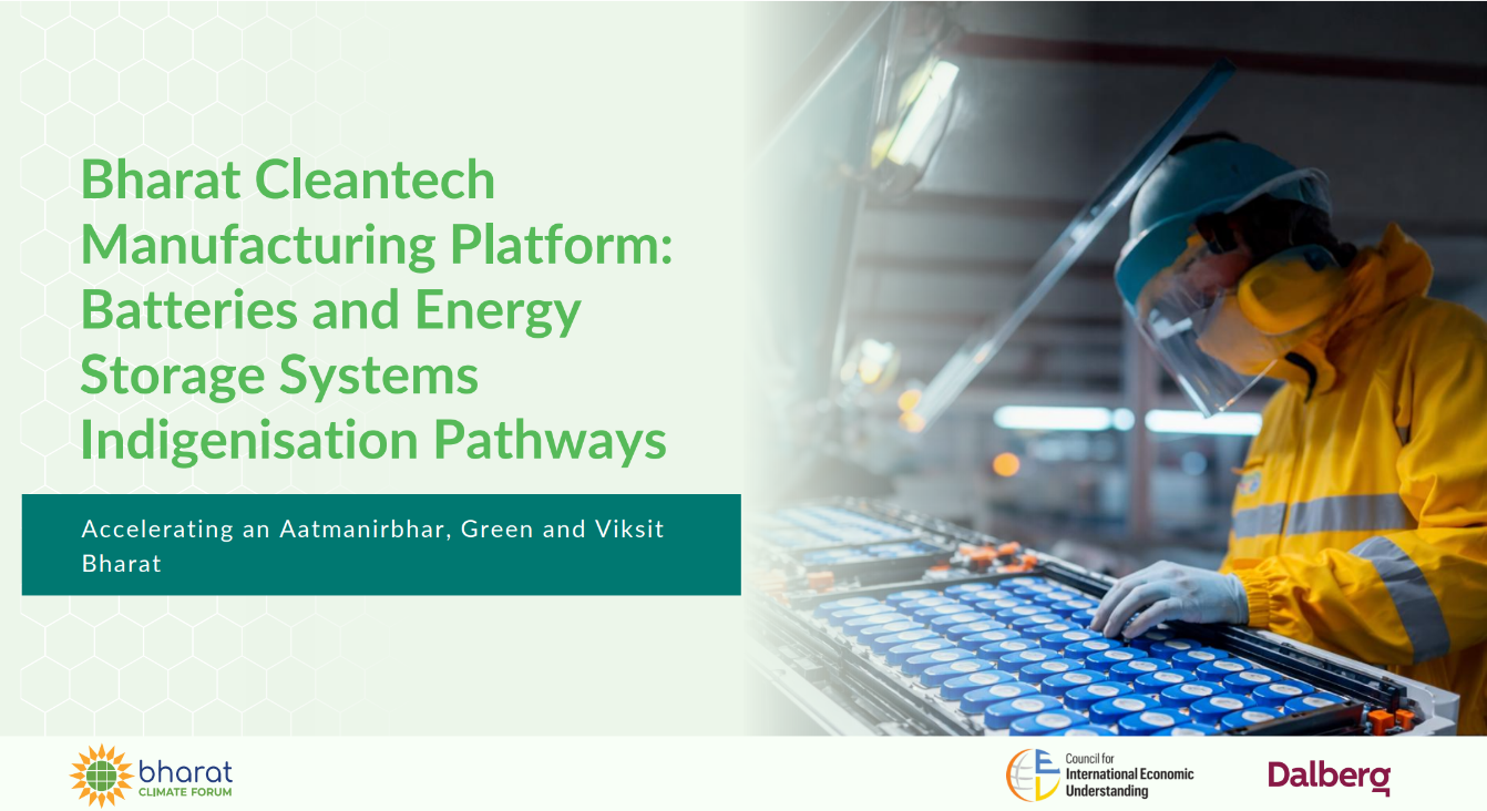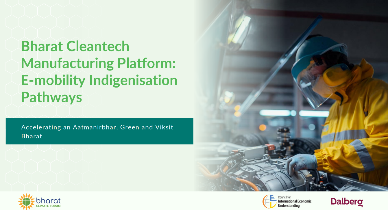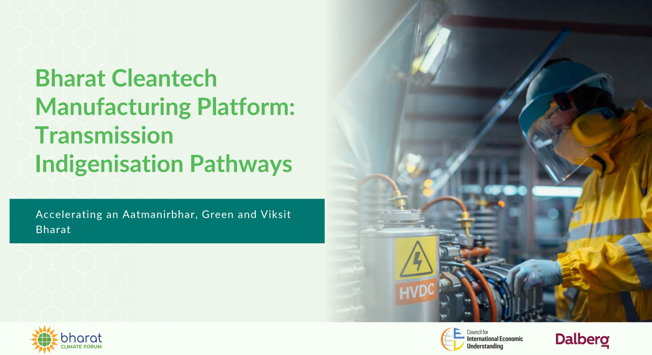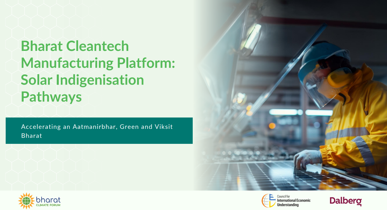 India’s transition to a low-carbon economy will be shaped not only by the deployment of clean technologies, but also by the strength of its domestic manufacturing ecosystems. As part of the Bharat Climate Forum’s efforts, Dalberg undertook this series of sectoral pathway analyses to examine how India can build and scale manufacturing capability across six priority cleantech value chains: solar photovoltaics, wind energy, battery and energy storage, electric mobility, green hydrogen, and high-voltage transmission. The work maps current manufacturing strengths and structural dependencies on imported inputs and then sets out reforms required to reach ~50% domestic value addition by 2030. The analysis also quantifies the economic opportunity and job creation that deeper indigenization could unlock for India in domestic and global markets.